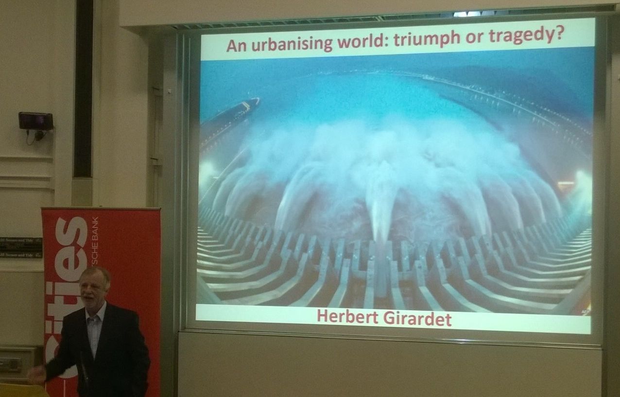 I first read the work of Herbert Girardet in Undercurrents in the early eighties, and his short book Creating Sustainable Cities – published in 2006 by Green Books – was fundamental in shaping my view of the planet’s urban boom. This was the book where he calculated that London’s ecological fooprint was 125 times larger than the city itself, and so larger than the UK. So when I found that he was talking at the LSE as a guest of the LSE Cities programme, I made sure I could go along.