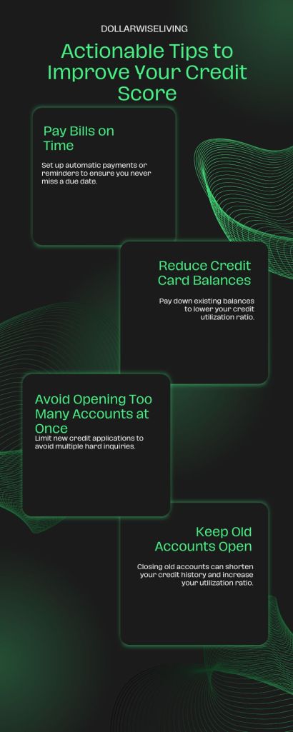 Improving your credit score takes time, but small, consistent actions can make a big difference. Here are some practical steps to get started: