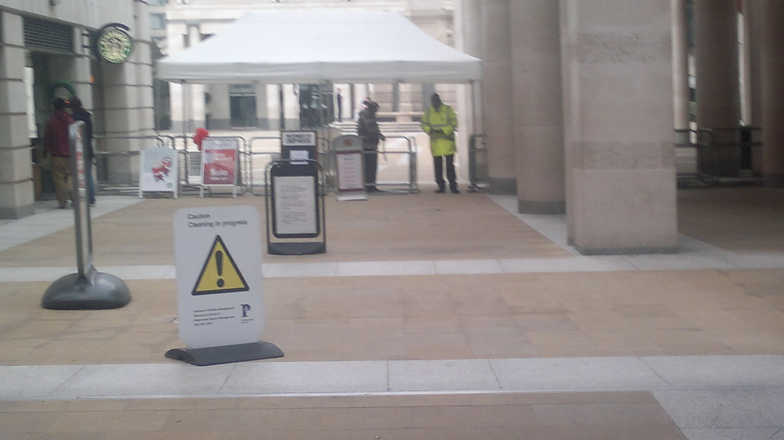 So it seems appropriate that Occupy LSX has made so visible the private nature of Paternoster Square (as seen in the picture above) and that one of the ‘teach-outs’ it has organised through its Tent City University was about the private control of public space. By privatised public space, I mean that space which appears to be a public space (a square or a lane, for example) is in fact owned and controlled by a private landowner (or sometimes managed privately for a public owner.) Either way, different rules apply. It’s a trend which has been driven along by private sector regeneration schemes, and reinforced by a plethora of increasingly contentious public order legislation. But it is all but invisible.